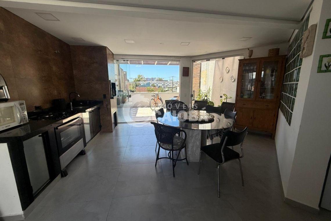 Cozinha e área gourmet integradas, com amplo espaço e sacada