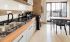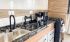 Sala de estar integrada a uma cozinha gourmet com churrasqueira, proporcionando um espaço ideal para receber amigos e familiares.