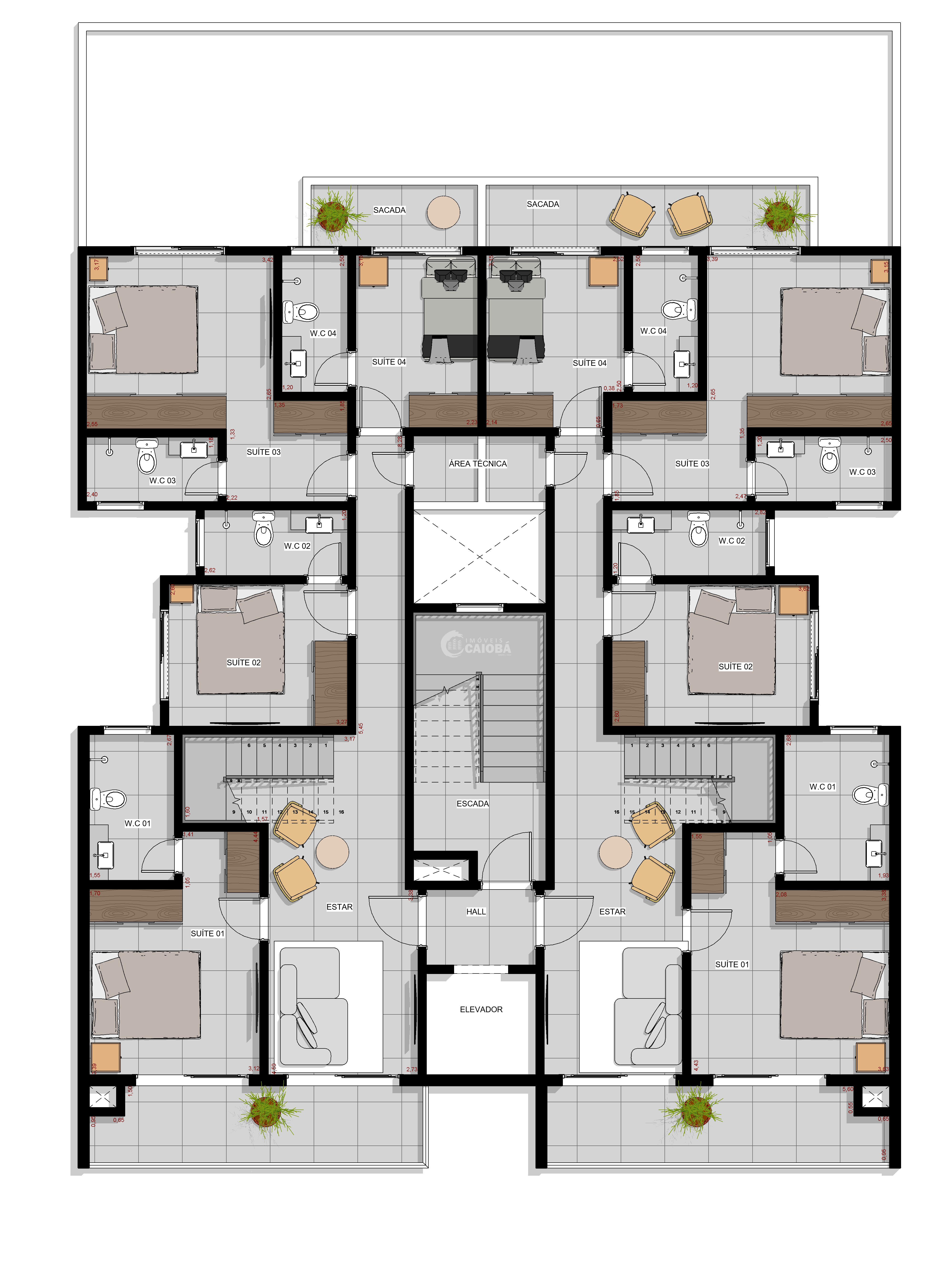 - Coberturas duplex com 4 suítes